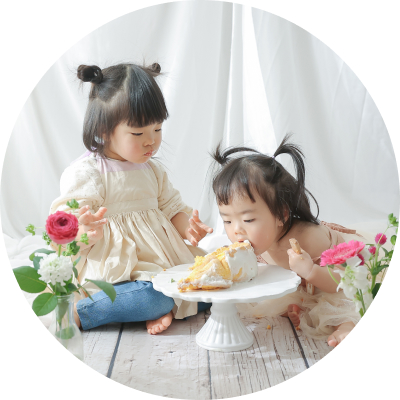 1歳のお誕生日は、赤ちゃんにとってはじめての大切な記念日。こだわりのとびきり美味しい無添加スマッシュケーキ&ミルクバスで、まるでパーティーのような1日をお過ごしください。お誕生日は、1年に1度のその子だけが主役の日。何歳でも、どんな撮影をしたいのか、どうぞお気軽にご相談くださいね。