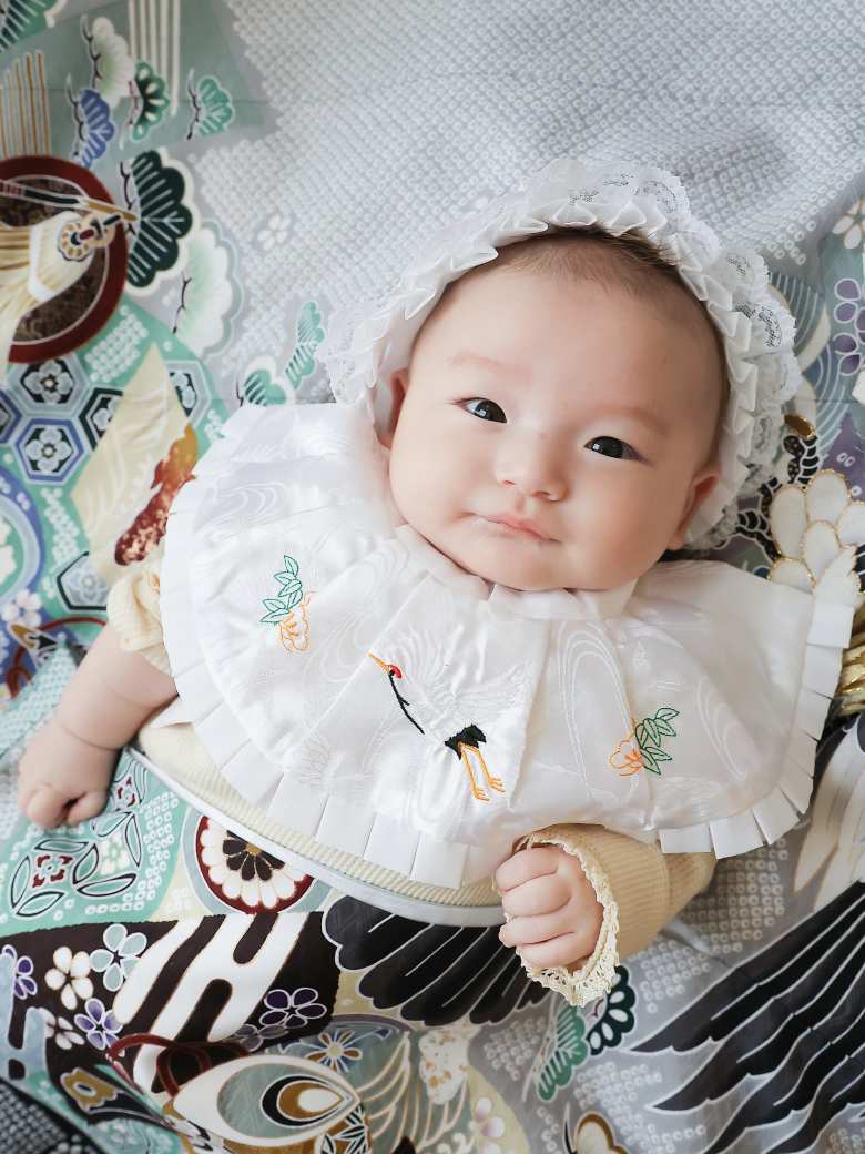 A. しきたりを重んじる場合は、生後1ヶ月前後に行う方が多いですが、楽しく思い出に残るイベントにするためには、赤ちゃんもママも体調がよく、過ごしやすい時期であることがおすすめです。3ヶ月ごろになってくると笑顔も増えて、赤ちゃんもしっかりしてくるので100日祝いやお食い初めと兼ねて撮影される方も多いです。